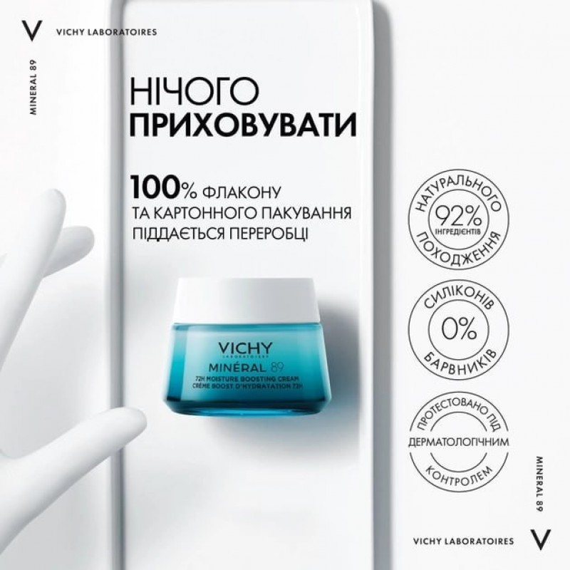 Легкий крем Vichy Mineral 89 Зволоження 72 години для всіх типів шкіри обличчя 50 мл (3337875831888)